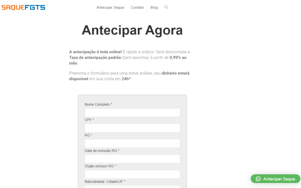 O primeiro passo é acessar o Formulário de antecipação do Saque FGTS.